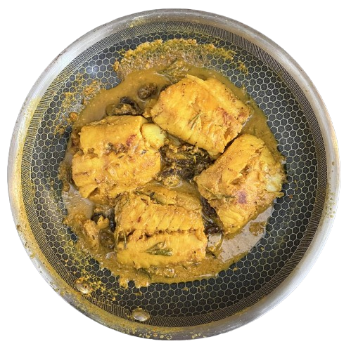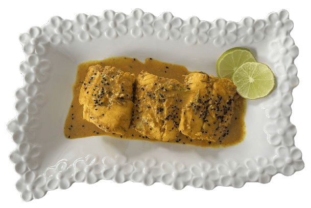 The cooked fish should be golden and tender to the touch.
