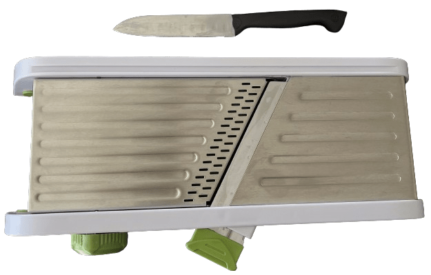 Slice an apple in half and use a mandoline slicer to create paper-thin apple slices.