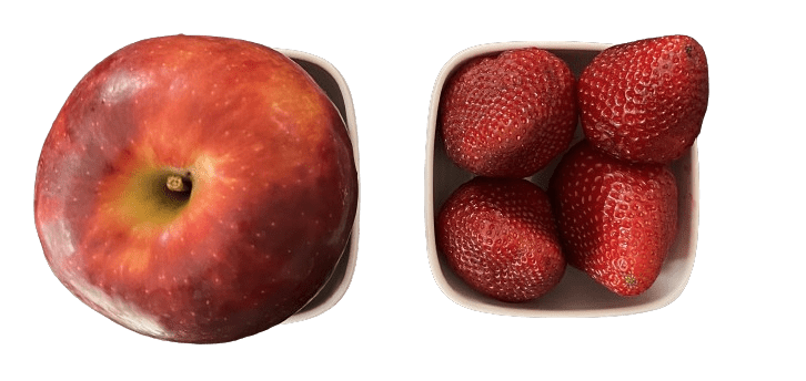 Place the sliced strawberries on top of the apple slices in a decorative pattern.