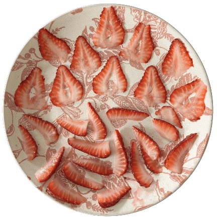 Slice a strawberry in half and do the same thing to create thin strawberry slices.