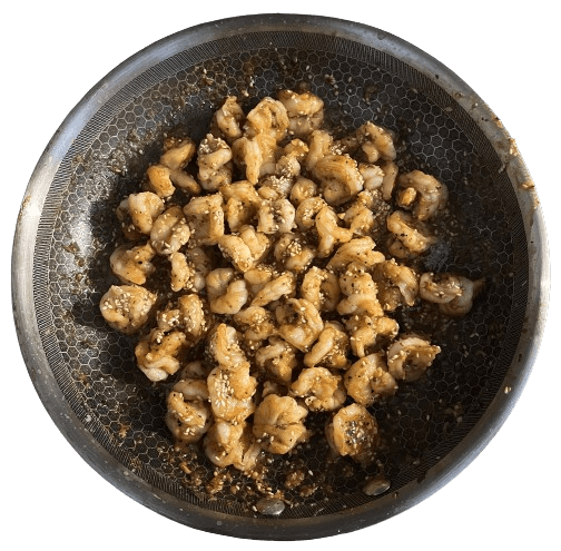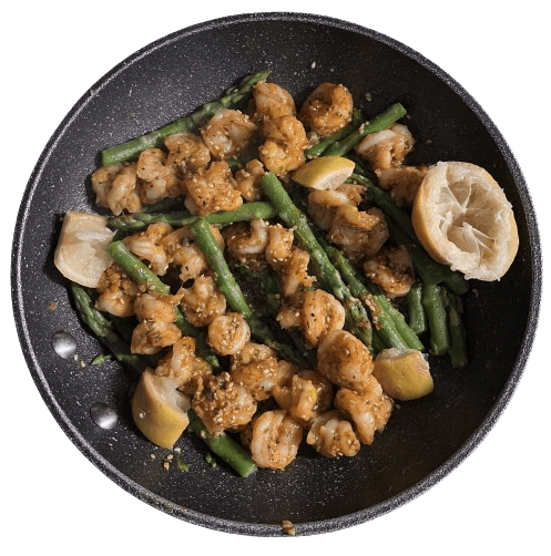 • Drizzle olive oil on a pan and cook the shrimp on the stove’s High heat setting for 10 minutes until golden.