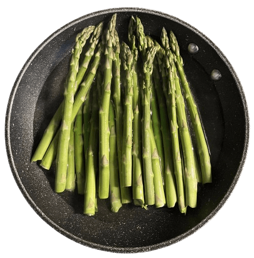 • Drizzle olive oil on a pan and cook the asparagus on the stove’s High heat setting for 5 minutes.