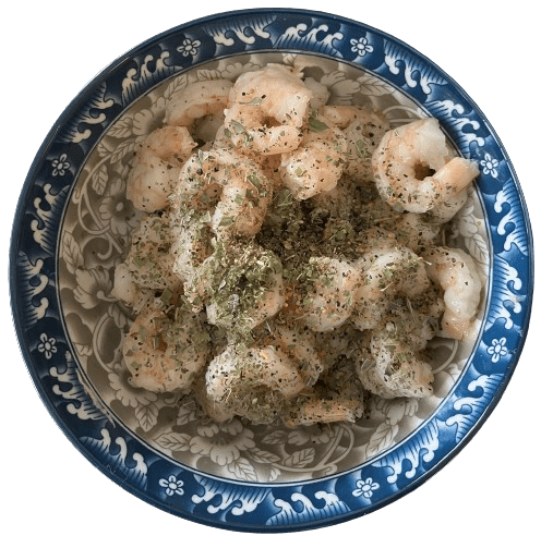 • Marinate the shrimp with oregano, chives, and salt.