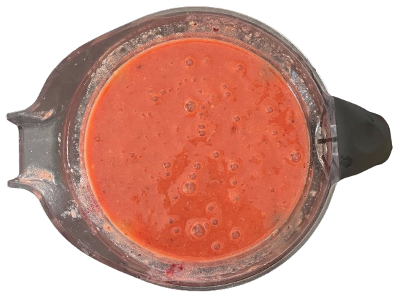 Add all the fruits and cherry sauce into a blender.