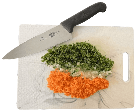 Finely mince the parsley, carrots, and onions.