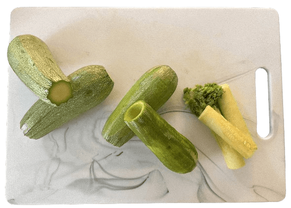 Remove the core of the zucchini and red pepper until the inside is clear.