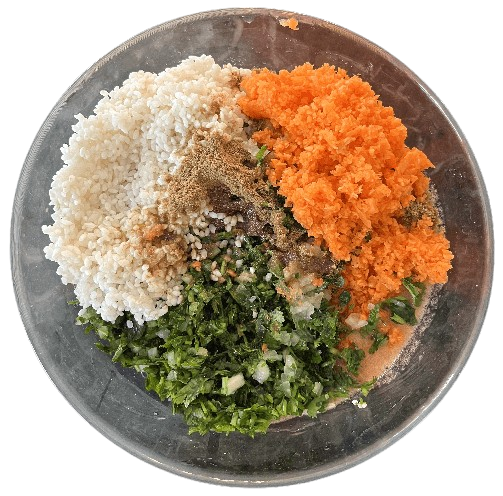 Place the minced parsley, carrots, and onions in a bowl.
